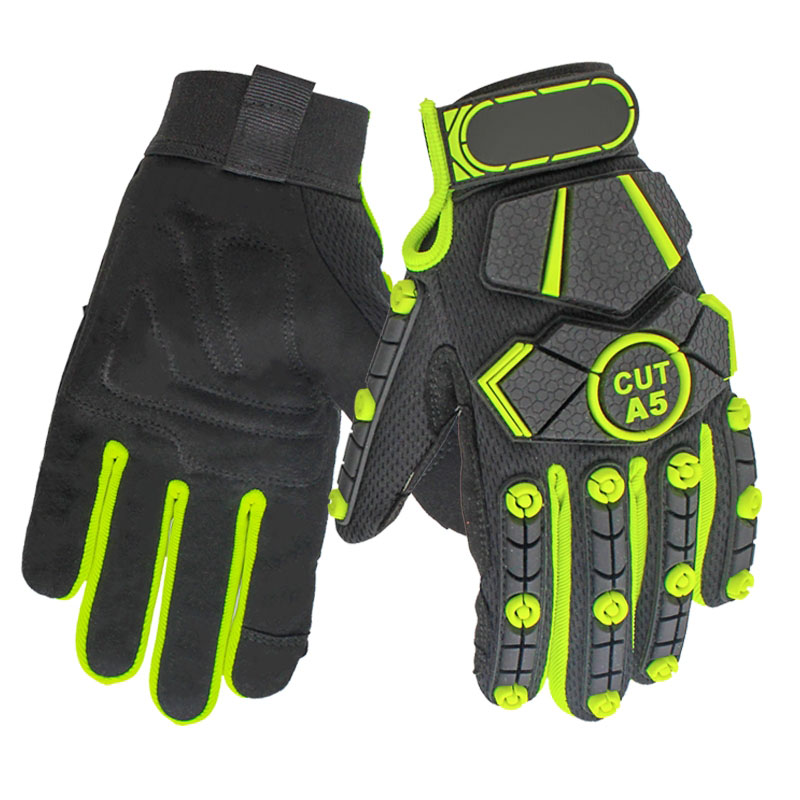 • Anatomically designed two-piece palm eliminates material bunching. Industrial grade hook and loop.